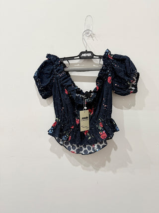 Nicholas Floral Print Off-the-Shoulder Cropped Blouse Top Black Women's Size 2