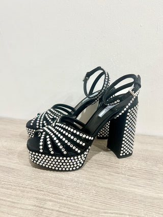 NWOT Prada Black Satin Crystal Embellished Ankle Strap Platform Sandals Black 37