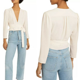 Reiss Alena Plunging V-Neck Button Front Cropped Blouse Ivory White Women's 0