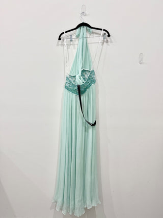 Retrofête Gianni Beaded Geometric Lace Maxi Dress Champagne Women's Size Medium