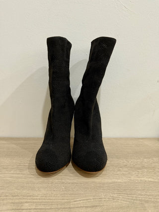 NWOT Russo Stretch Fabric Mid-Calf Rround Toe Heeled Booties Black Women EU 36.5