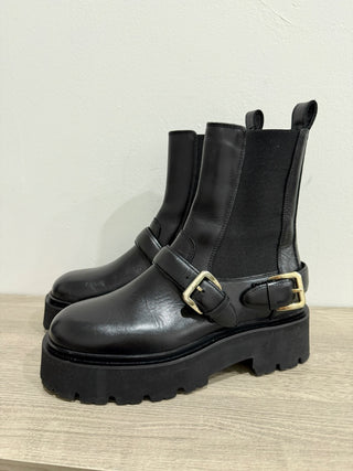 NWOT Sandro Helen Chunky Sole Buckled Chelsea Boots Black Women's 40/ US 9.5