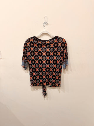 Sandro Short Sleeved Navy Blue orange leaf-pattern multicolor Shirt, M