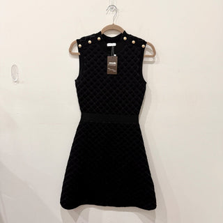 Sandro Many Quilted Lurex Knit A-Line Mini Dress w/ Gold Buttons Black Women's S
