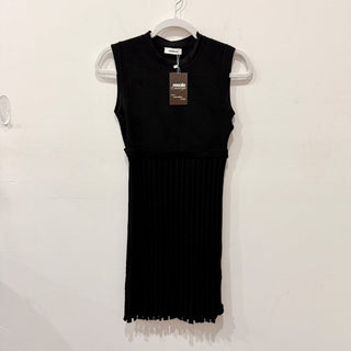 Sandro Scorpion Sleeveless Round Neck Pleat Skirt Mini Dress Black Womens Size S