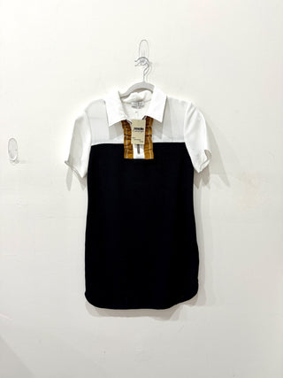 Sandro Colorblock Half Zip Gold Ruffle Trim Mini Polo Dress Navy White Size 4-6