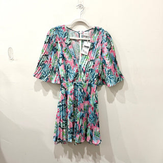NWOT Saylor Byrd Floral Matte Satin Pleated V-Neck Mini Dress Blue Women's S