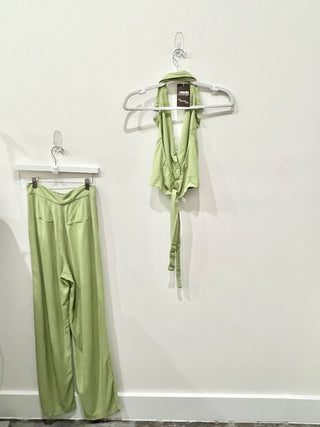 NWT Showpo. Laurenna Faux Leather Ruched Front Split Midi Skirt Stone Women US 2