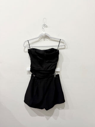 Showpo. Strapless Faux Feather Trim Rhaiza Mini Dress Black Women's Size US 2