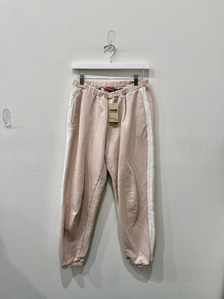 Staud Cotton Cambrie Side Striped Sweatpants Crystal Grey/White Womens Size M