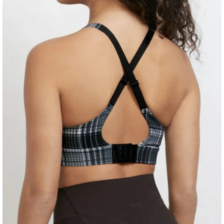NWT Stori Endurance Plaid Print Padded Sports Bra Black/White/Gray Women's US 2