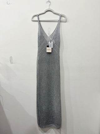 NWT Superdown Marlee V-Neck Long Mesh Cover Up Dress Silver Women's Size Small