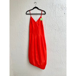 Tibi Spaghetti Strap Asymmetric V Neckline A-Line Midi Dress Red Women's Size 8