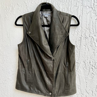 Vince 100% Leather Military Moto Vest Jacket Olive Green Women's Size XS