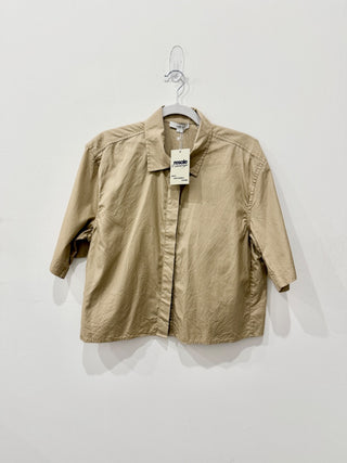 Vince Cotton Poplin Boxy Cropped Button Up Shirt Champagne Women's Size Large