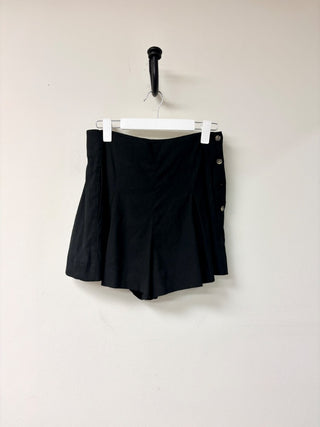 Vince Pleated Button Linen Blend High Waisted Trouser Shorts Black Womens Size 6
