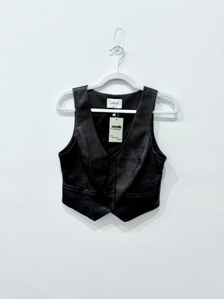 Aritzia Wilfred Desire Vegan Faux Leather Vest Gilet Top Black Womens Size Small