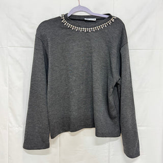NWT Zara Embellished Rhinestone Long Sleeve Round Neck Sweater Grey Marl Women S