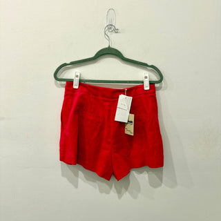 NWT Zara Linen Blend High Waisted Pleated Trouser Shorts Red Women's Size M