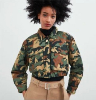 NWT Zara Camouflage Full Zip Cropped Bomber Jacket Military Green Women's Large