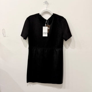 NWT Zara Combination Faux Suede Leather Mini Dress Black/Black Women's Medium