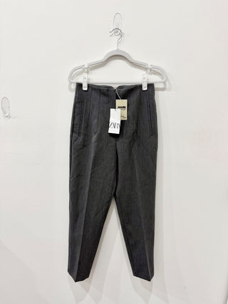 NWT Zara High Waisted Pleated Tapered Leg Cropped Dress Pants Gray Women's Small