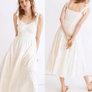 Madewell Eyelet Lucie Smocked Tie-Strap Tiered Midi Dress Cream Women's Size M