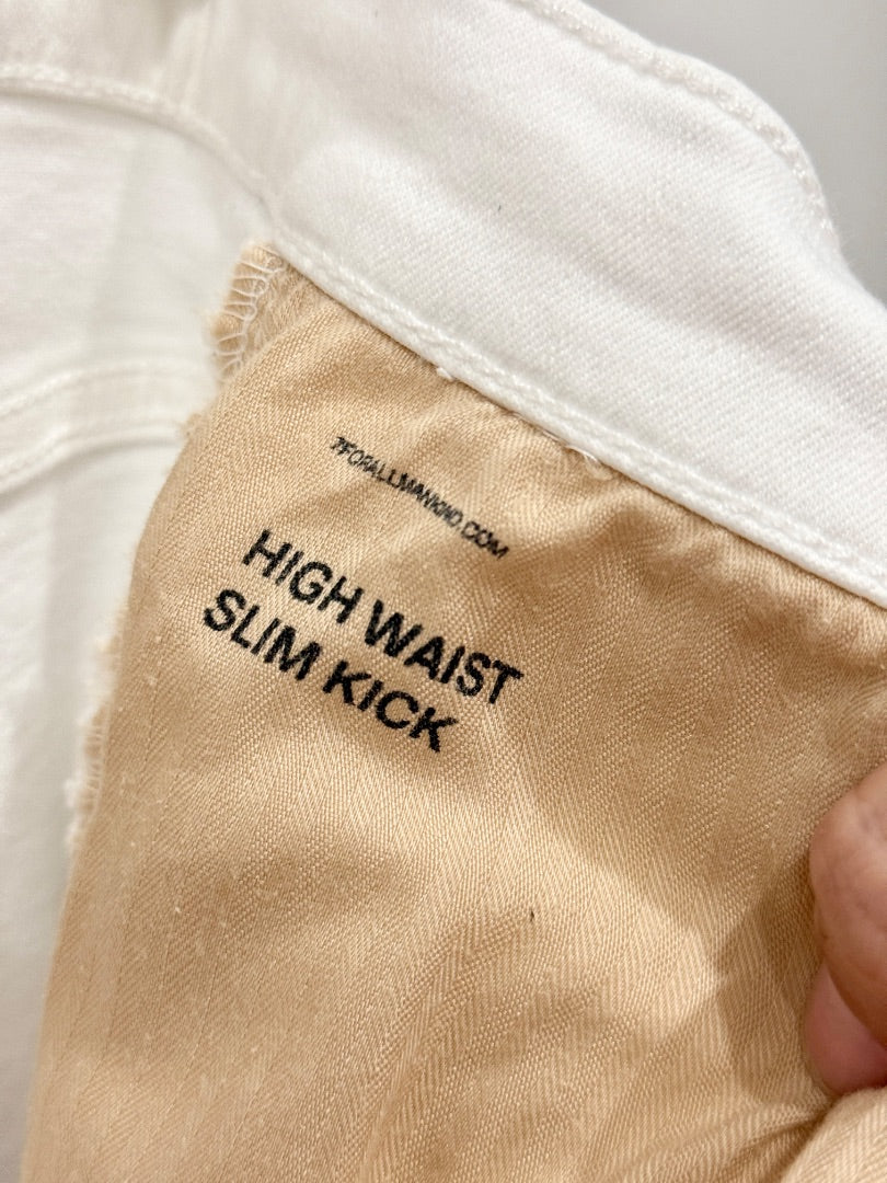 7 For All Mankind Illusion High Waisted Slim Kick Flare Crop Jeans White Women's 32