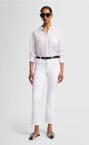 Designed to elongate the legs and provide a flattering fit, the crisp white denim adds a fresh, modern touch—perfect for casual days, brunch outings, or stylish everyday wear.