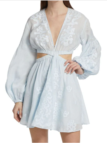 A.L.C. Irene Embroidered Cloud Ramie Cutout Mini Dress Ice Water Women's Size 10