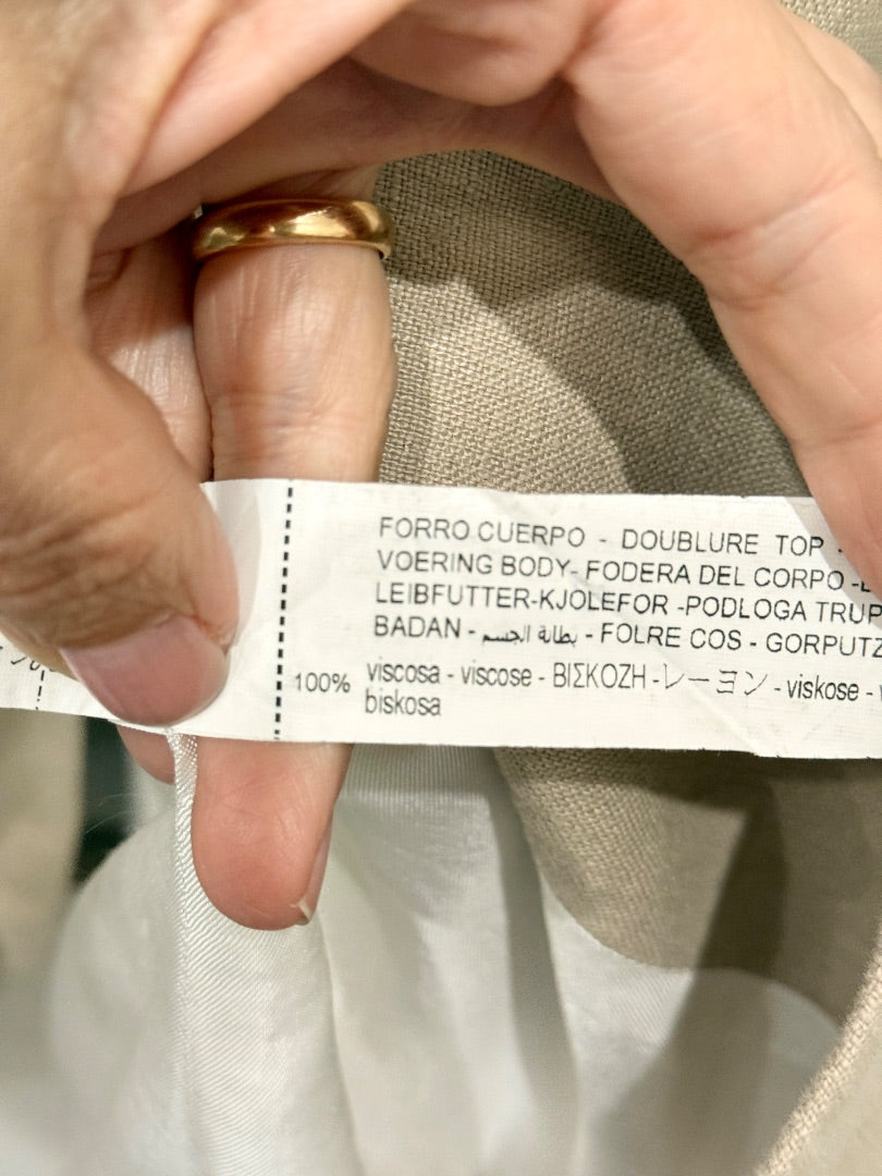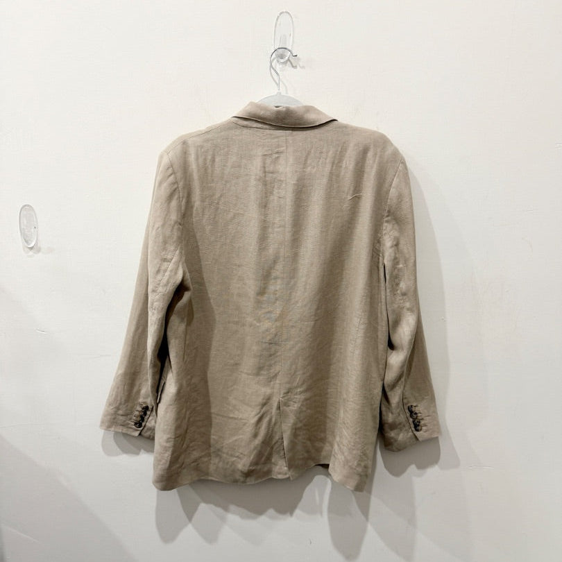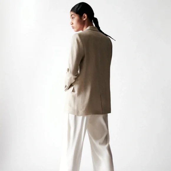 Zara Long Sleeve Peak Lapel Straight Cut Single Breasted Blazer Beige Women's 2