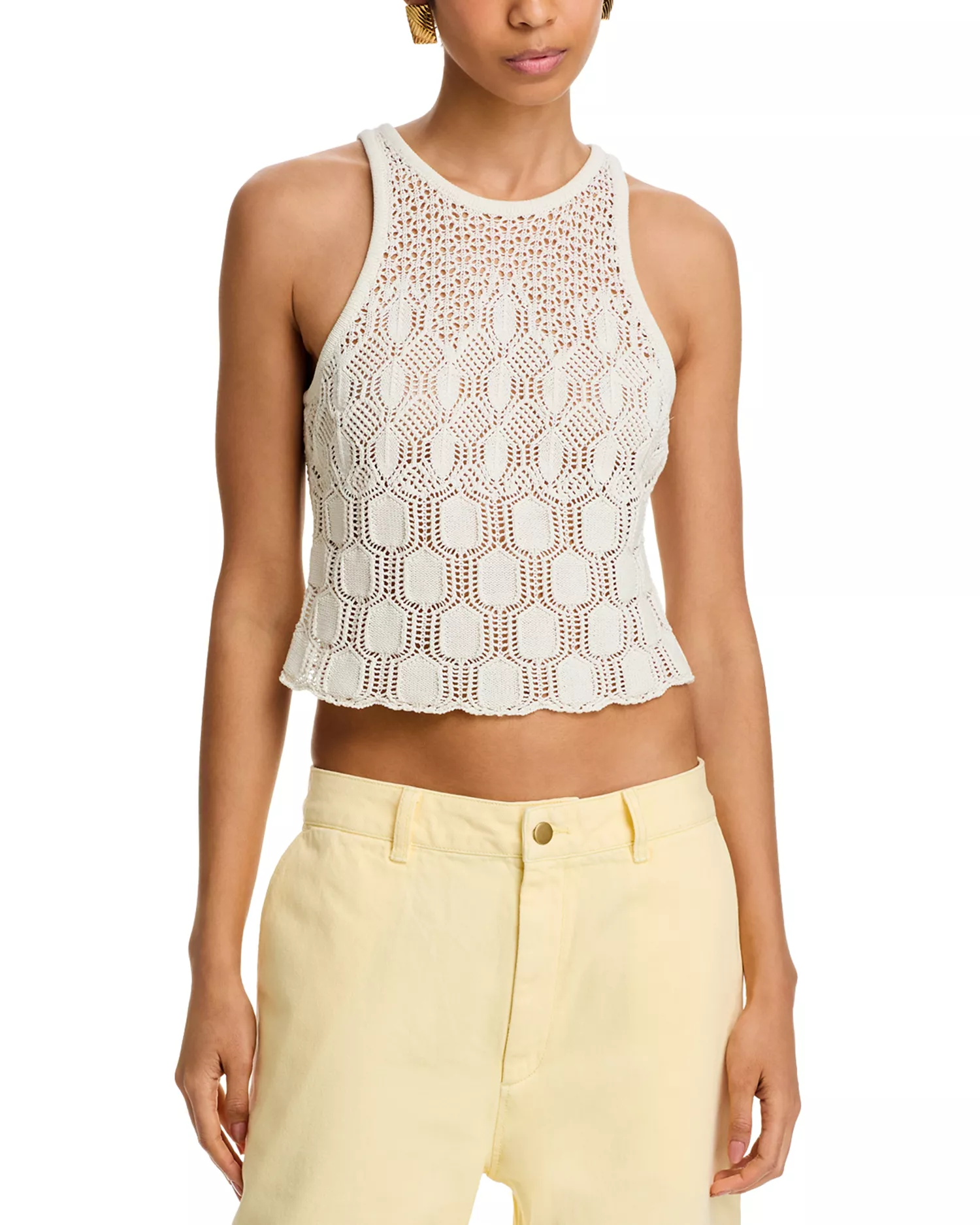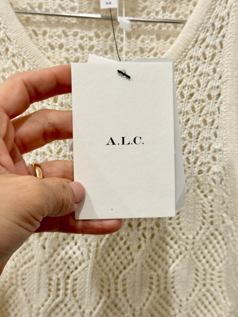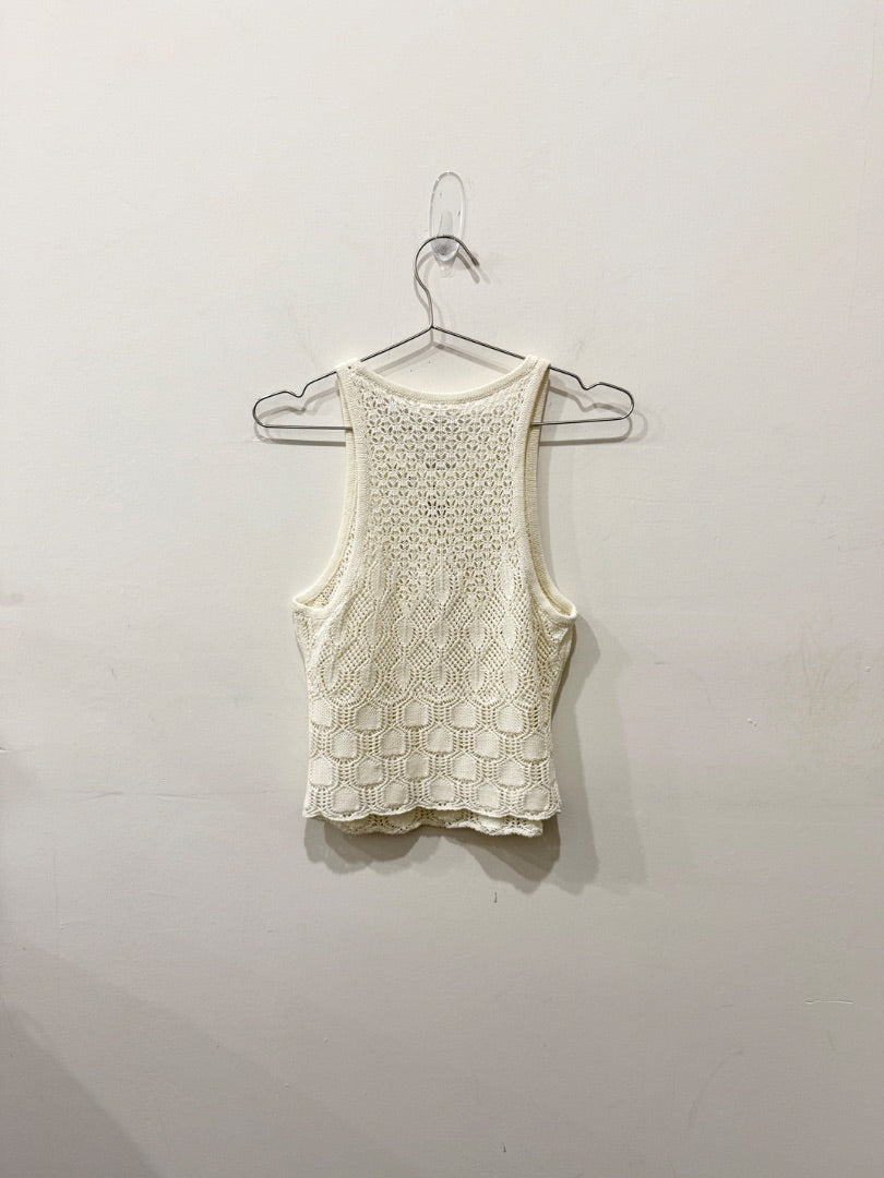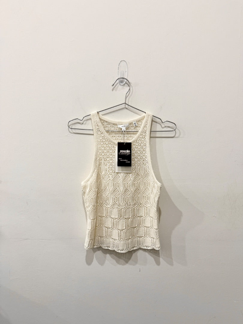 NWT ALC Rosa Crochet Knit Sleeveless Round Neck Crop Tank Top Cream Women's XS