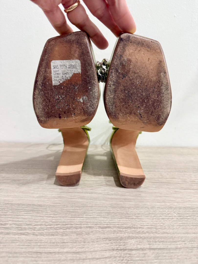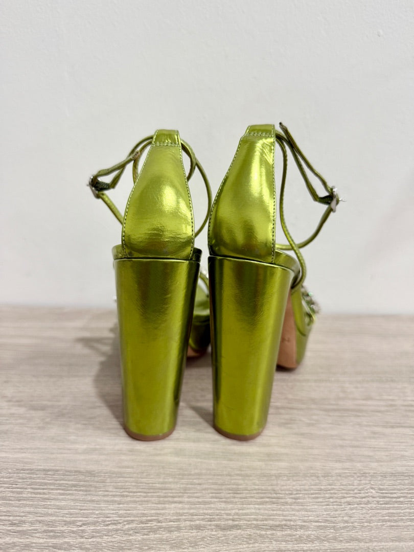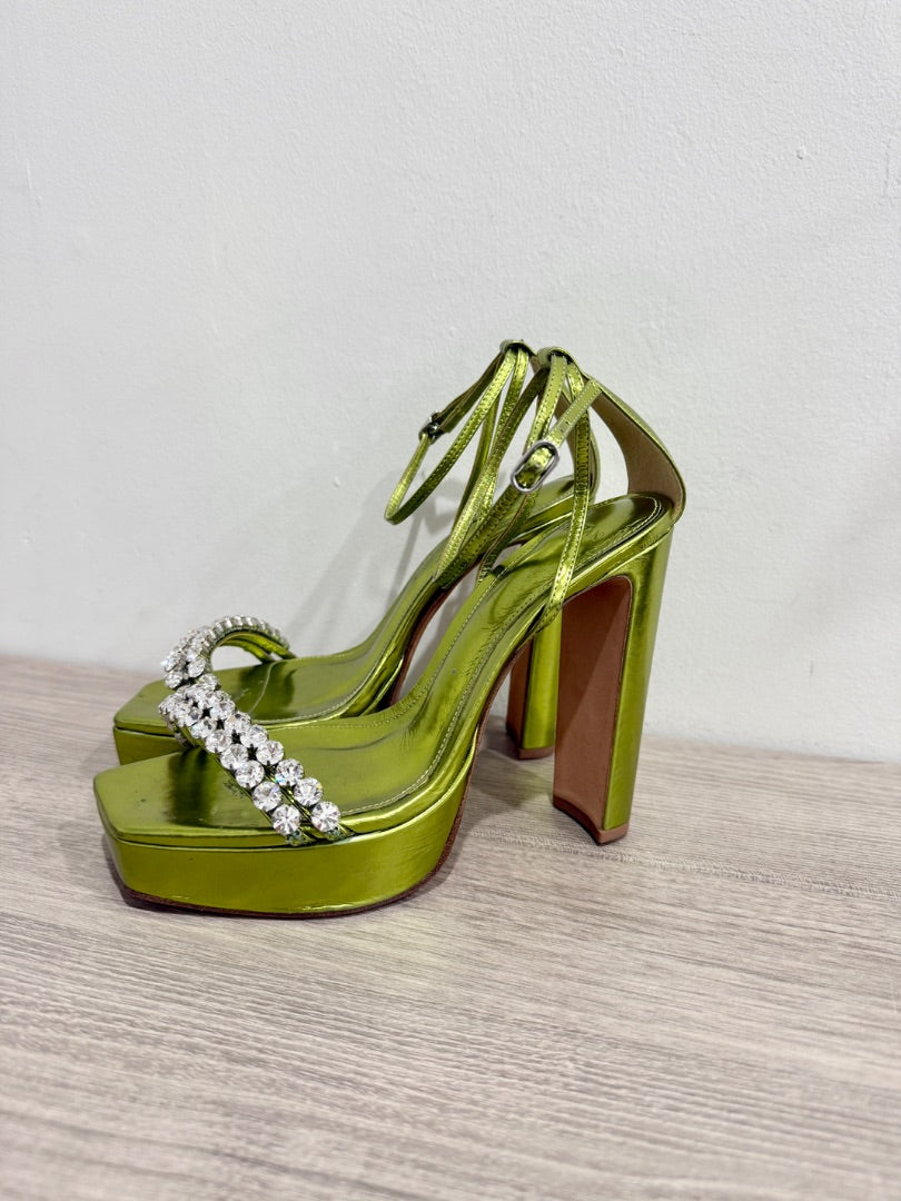 Alexandre Birman Lenny Metallic Leather Crystal Platform Sandals Avocado EU 36.5