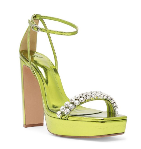 Featuring sparkling crystal embellishments, a chic ankle strap, and a comfortable platform sole, these sandals perfectly blend glamour and sophistication.