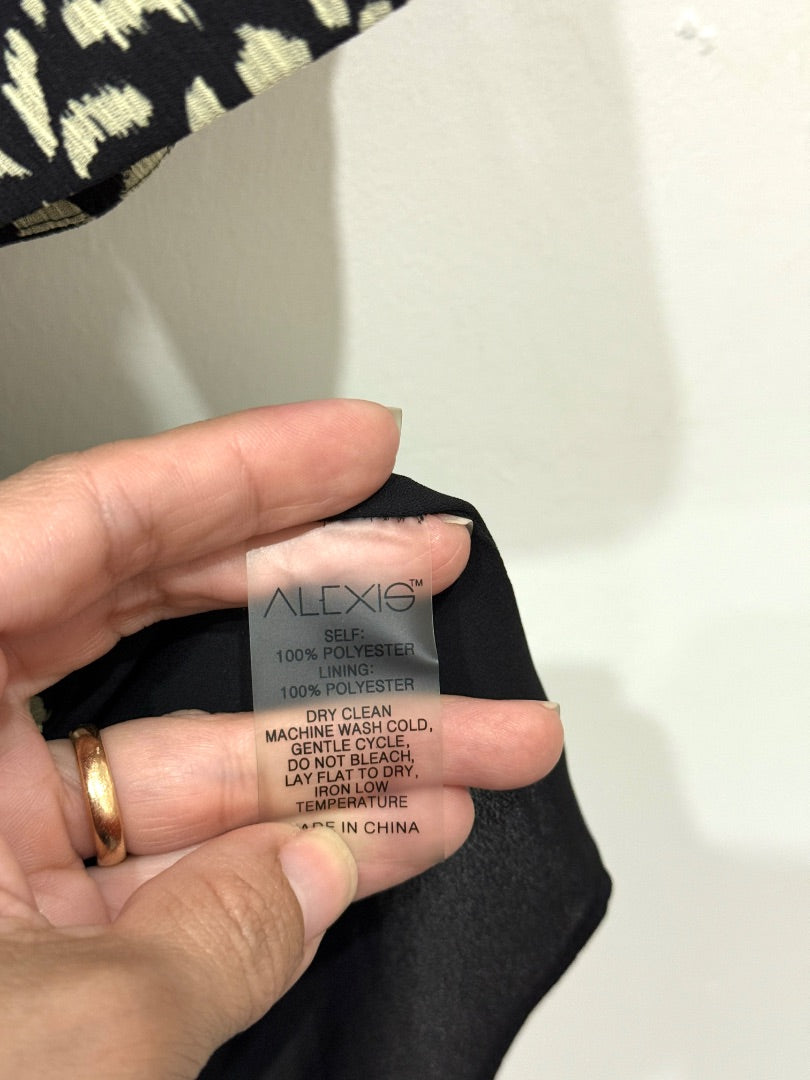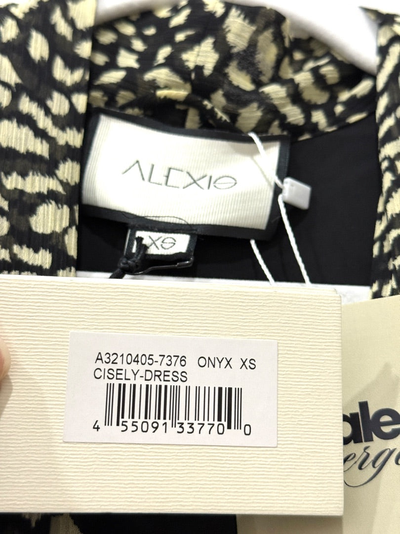 NWT Alexis Cisely Animal Print Bell Sleeve Tiered Midi Dress Onyx Womens Size XS