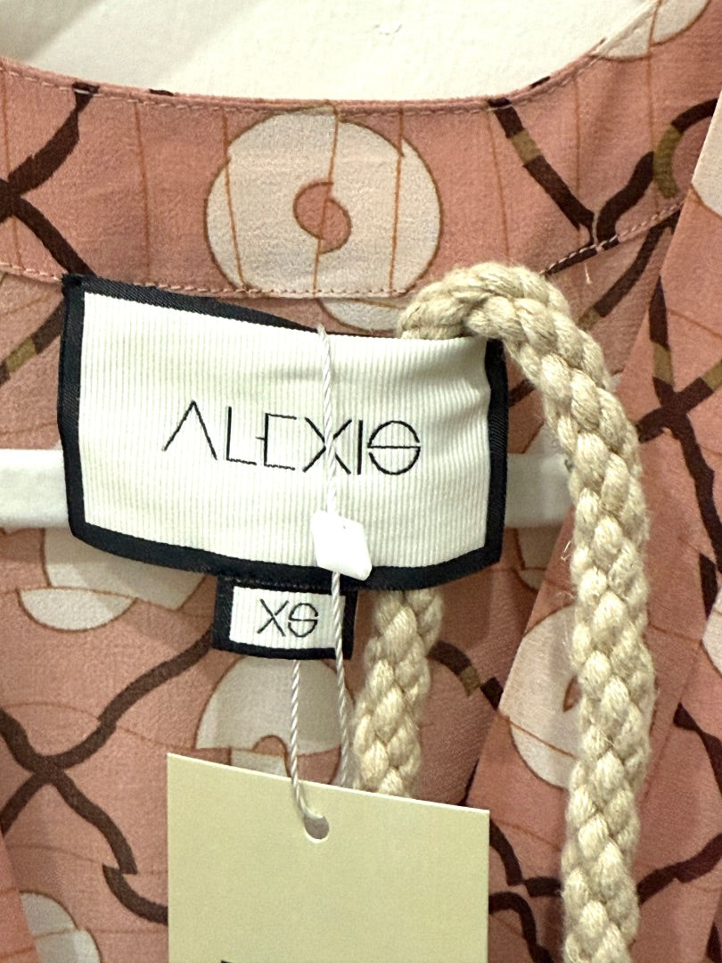 Alexis Sania Patterned Handkerchief Hem Midi Dress Blush White Women's Size XS