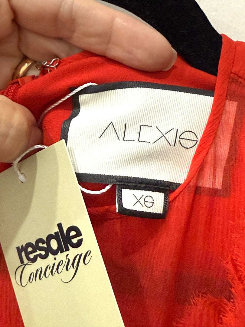 Alexis 100% Silk Cascading Ruffles Janine Evening Maxi Dress Red Women's Size XS