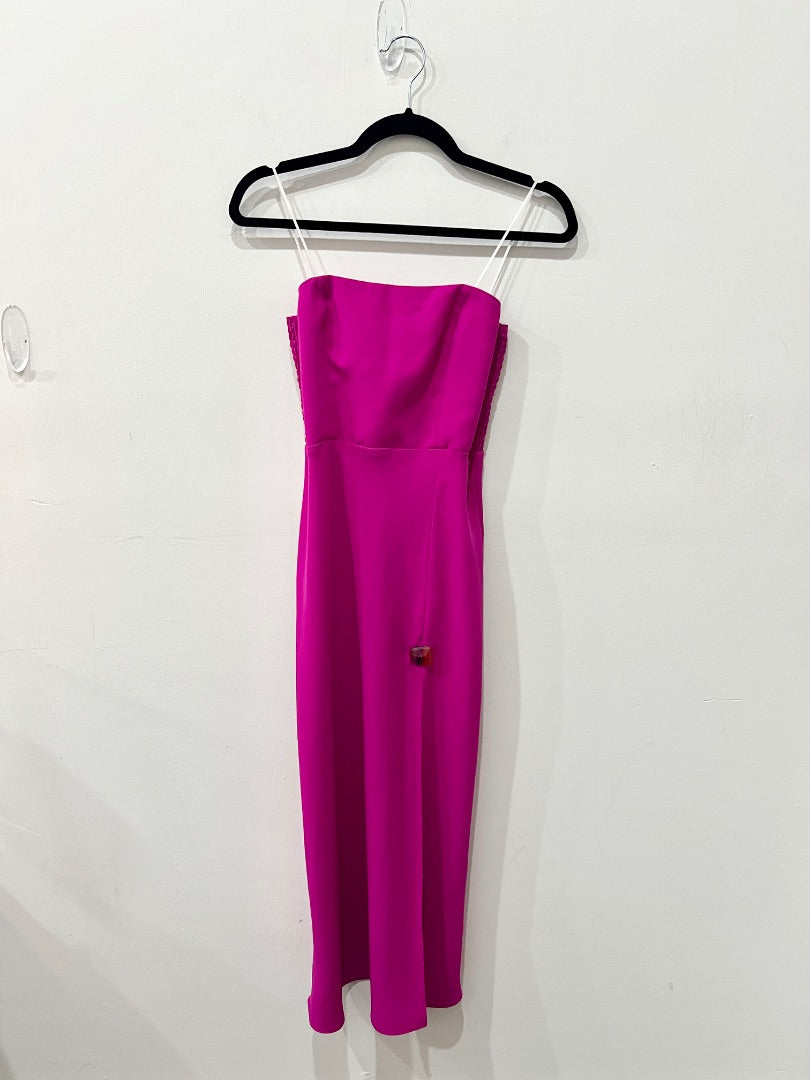 Amanda Uprichard Mandy Side Slit Strapless A-Line Midi Dress Pink Women's XS