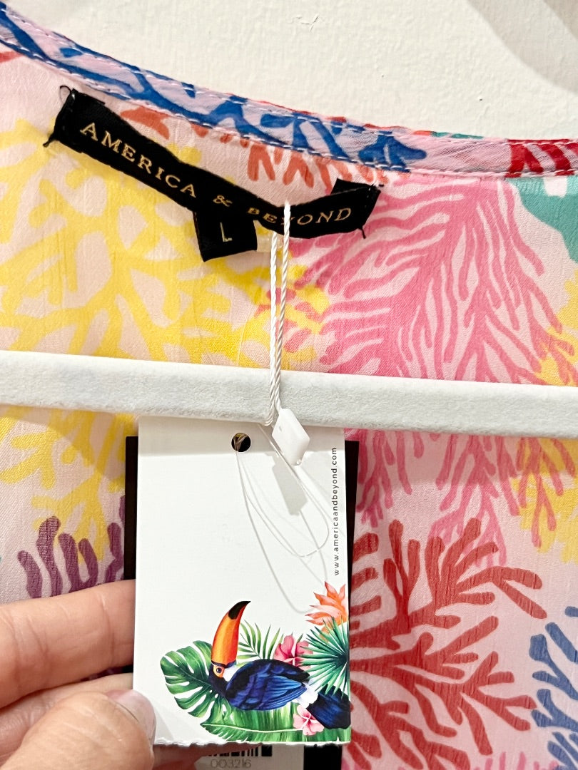 NWT America & Beyond Mauve Sedge Rush Sea Coral Cover Up Colorful Women's Large