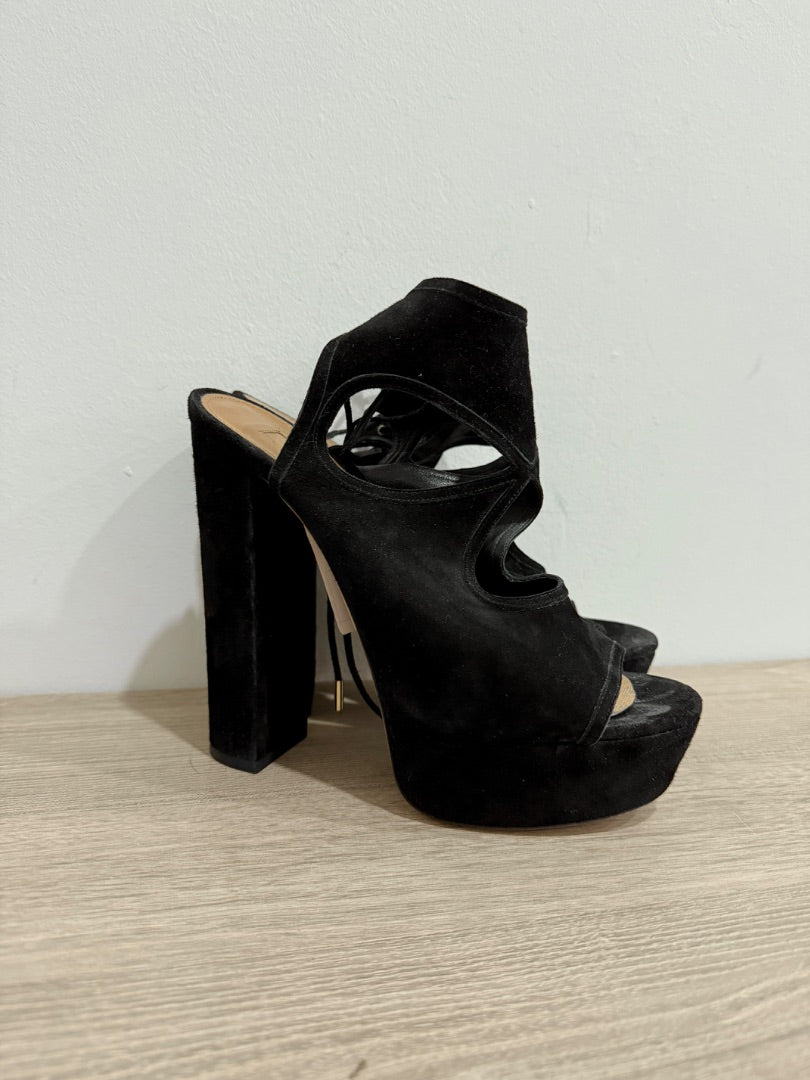 Aquazzura Sexy Thing Suede Ankle Strap Cutout Chunky Platform Heels Black EU 39