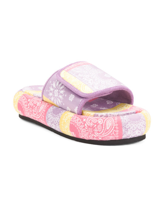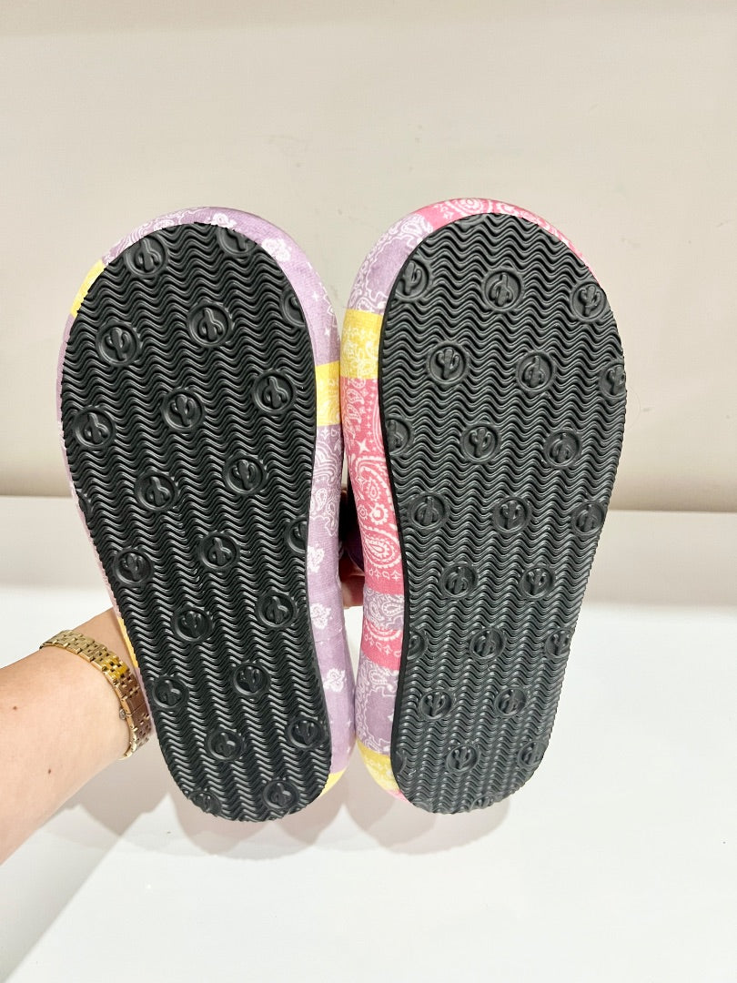 casual, going out, preppy, modest, mature, girly, feminine, chic, summer, comfy, comfortable, chic, minimalist, brunch, slip on, sandals, boho, platform, slides, loungewear, bandana print, bohemian, boho-chic
