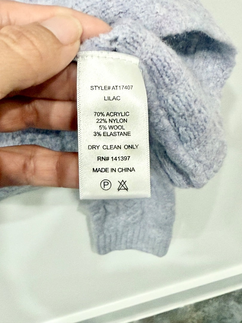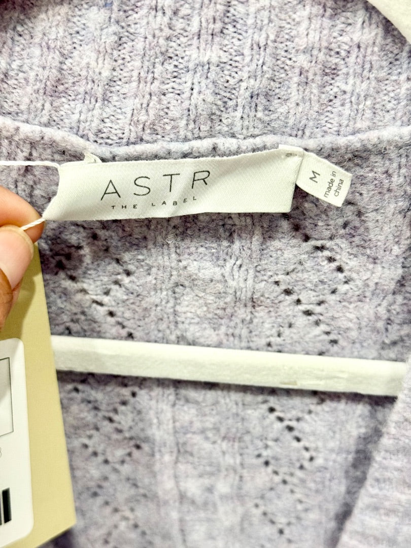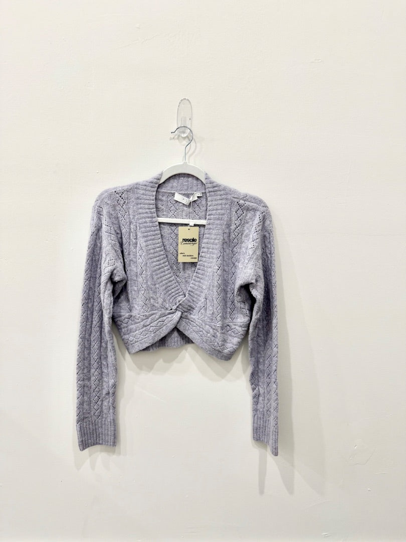 Astr The Label Long Sleeve Knot Front Cropped Knit Sweater Lilac Women's Size M