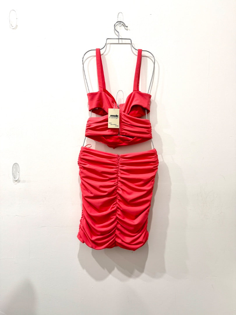 Atoir The Deju Vu Crop Top & Ruched Mini Skirt Flower Set Pink/Red Women's Small