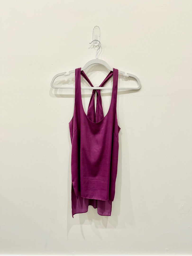 BCBGMaxazria Edita Sleeveless Twist Back High-Low Tank Top Magenta Women's S