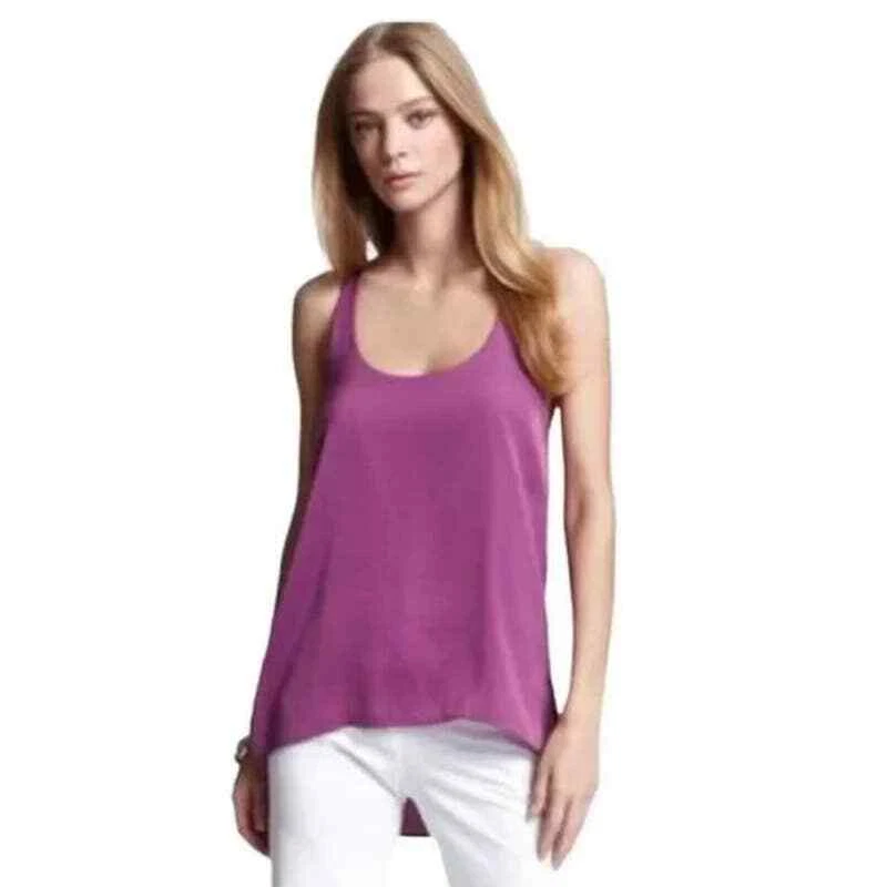 Add a pop of color and a twist of flair to your wardrobe with the BCBGMaxazria Edita Tank Top. The magenta hue brings bold energy to your casual or dressed-up looks.