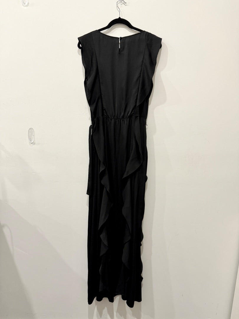 BCBGMaxazria Kolline Sleeveless Ruffle Trim Maxi Dress Black Women's Size Small