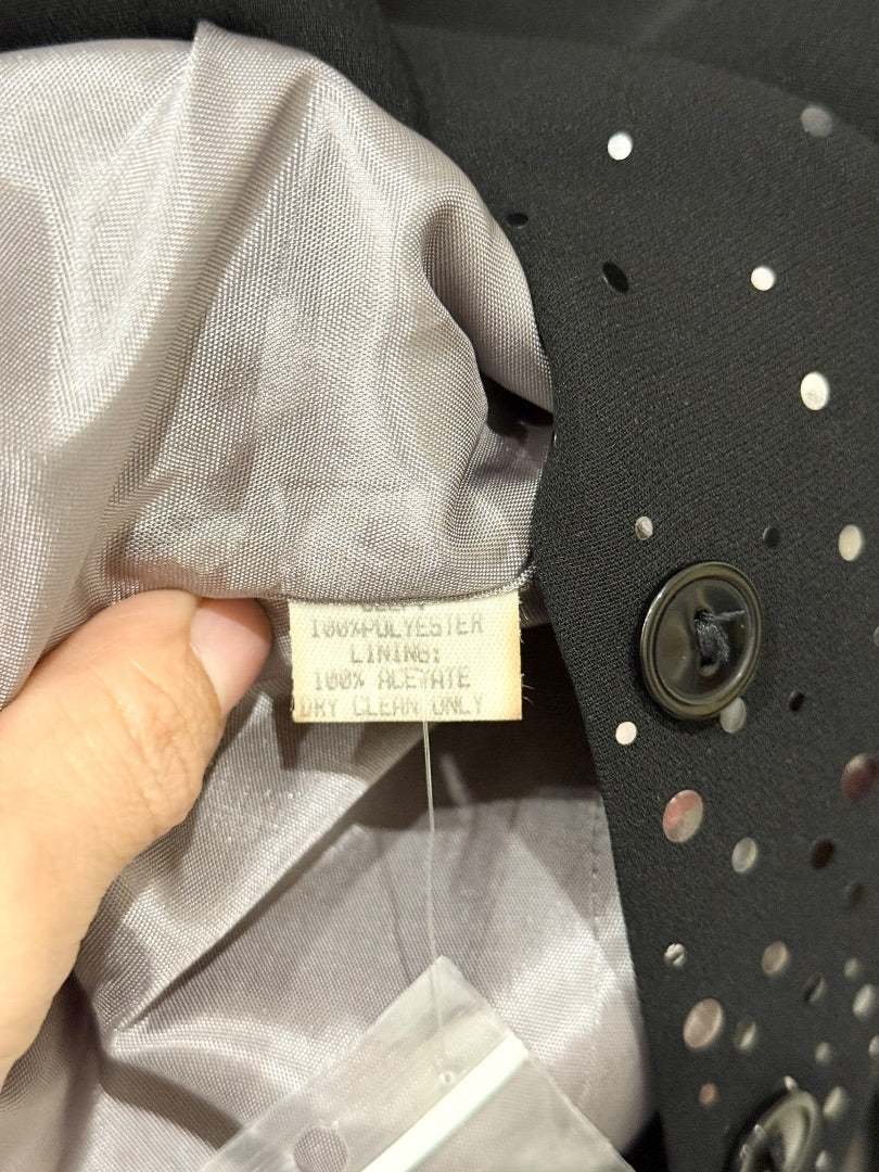 This blazer features a sleek single-breasted silhouette adorned with sparkling crystal embellishments, adding a refined yet eye-catching finish. Perfect for evening events, formal occasions, or elevating everyday looks.