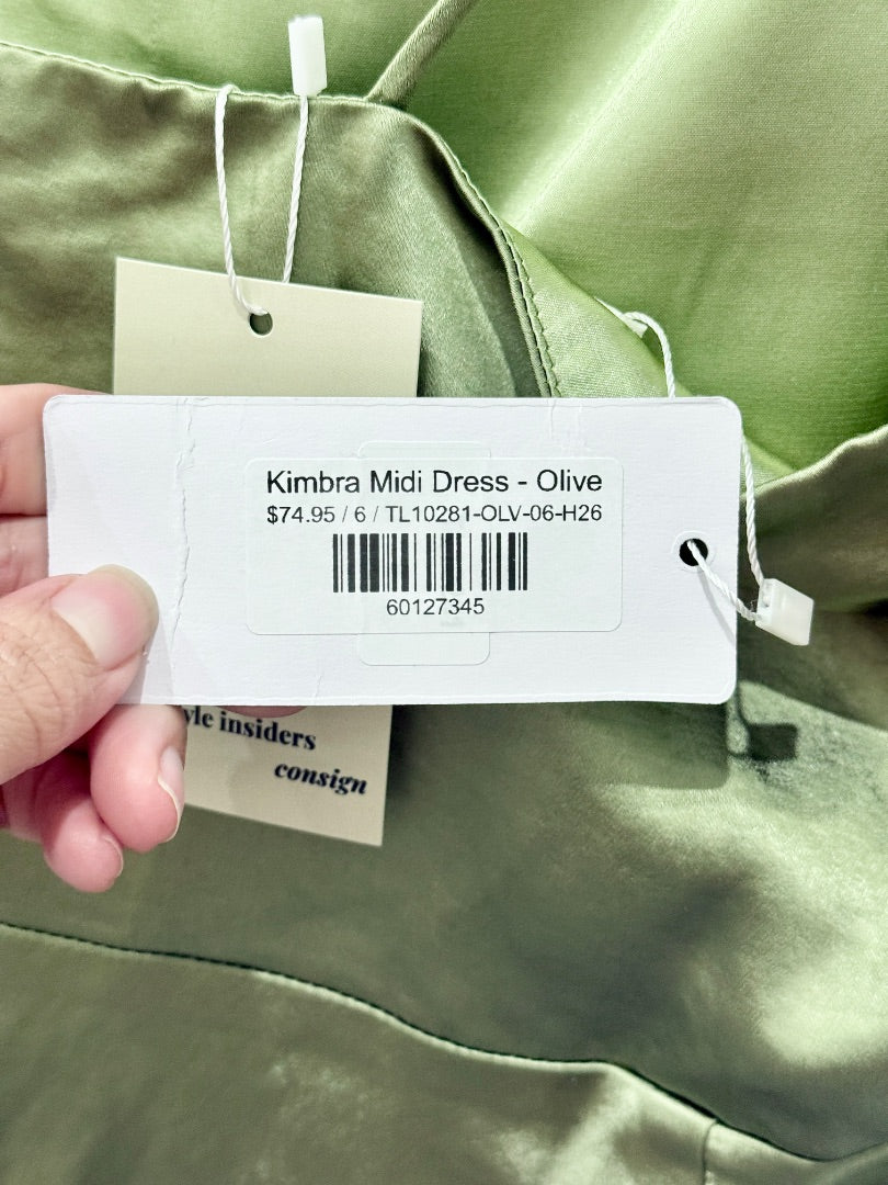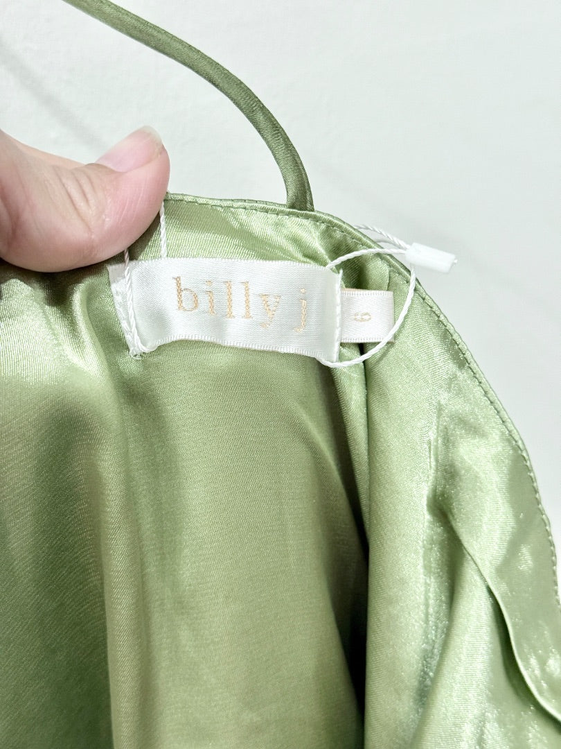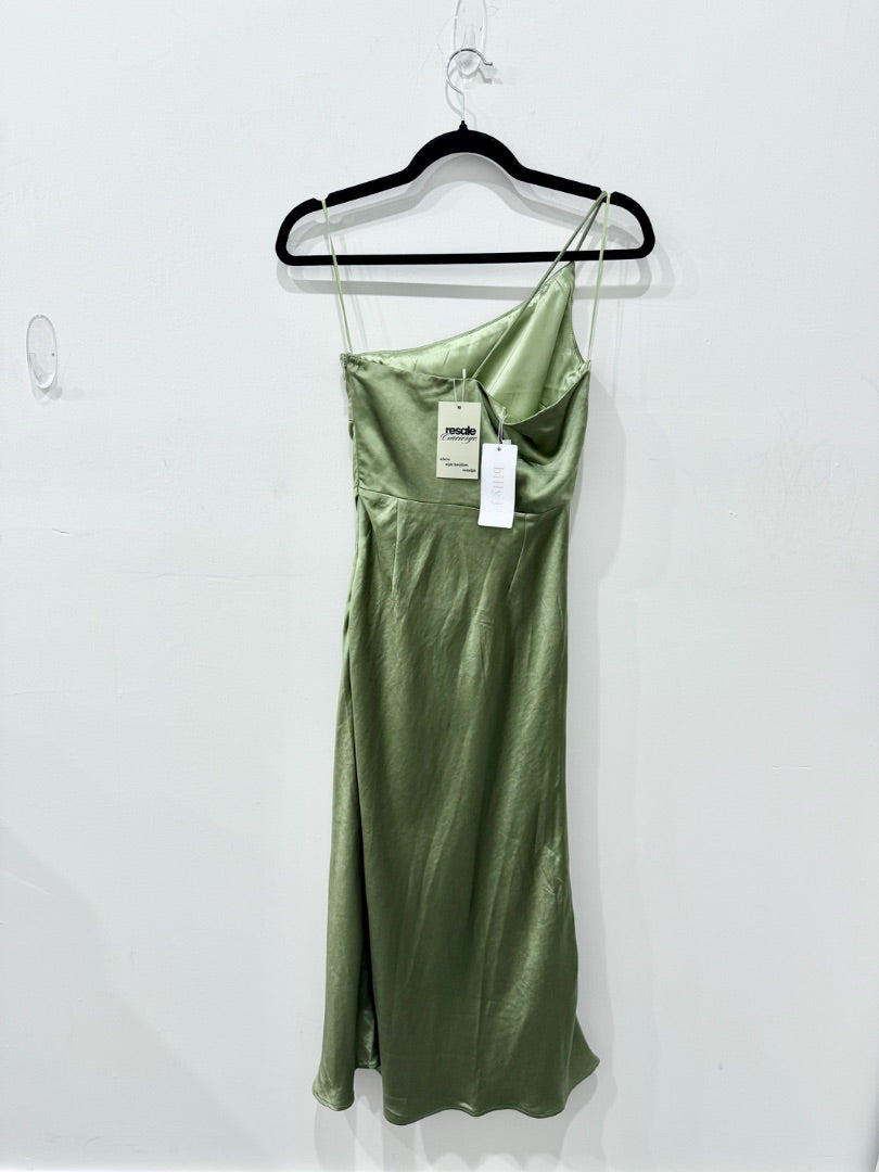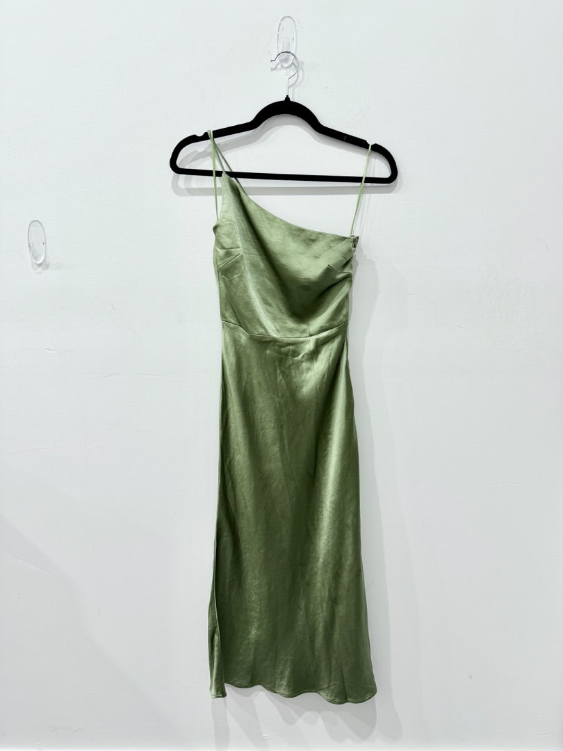 NWT Billy J Kimbra Satin One Shoulder Bridesmaid Midi Dress Olive Women's Size 2