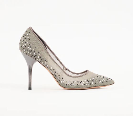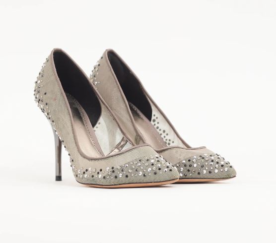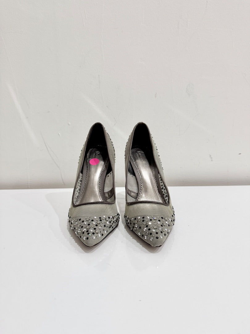 Bourne Samantha Embellished Rhinestone Mesh Pointed Pump Heels Silver Women's 38