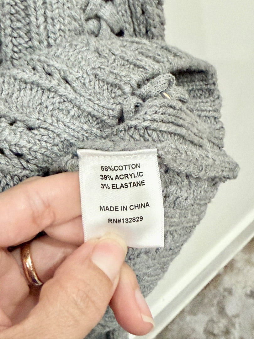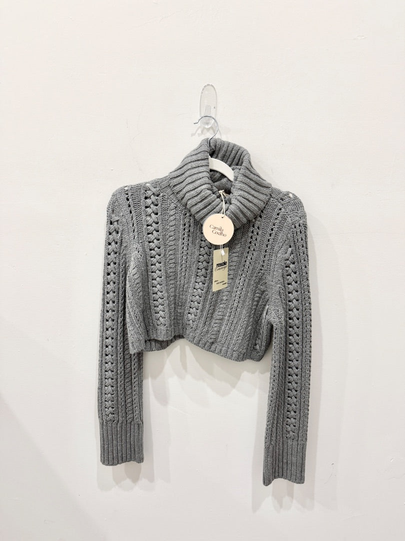 NWT Camila Coelho Daria Cable Knit Turtleneck Cropped Sweater Gray Women's XS